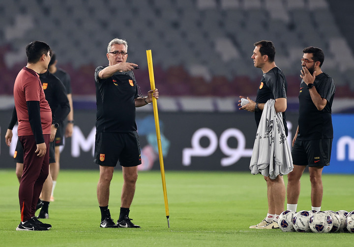 中国队主教练伊万科维奇(右三)在训练中。新华社发